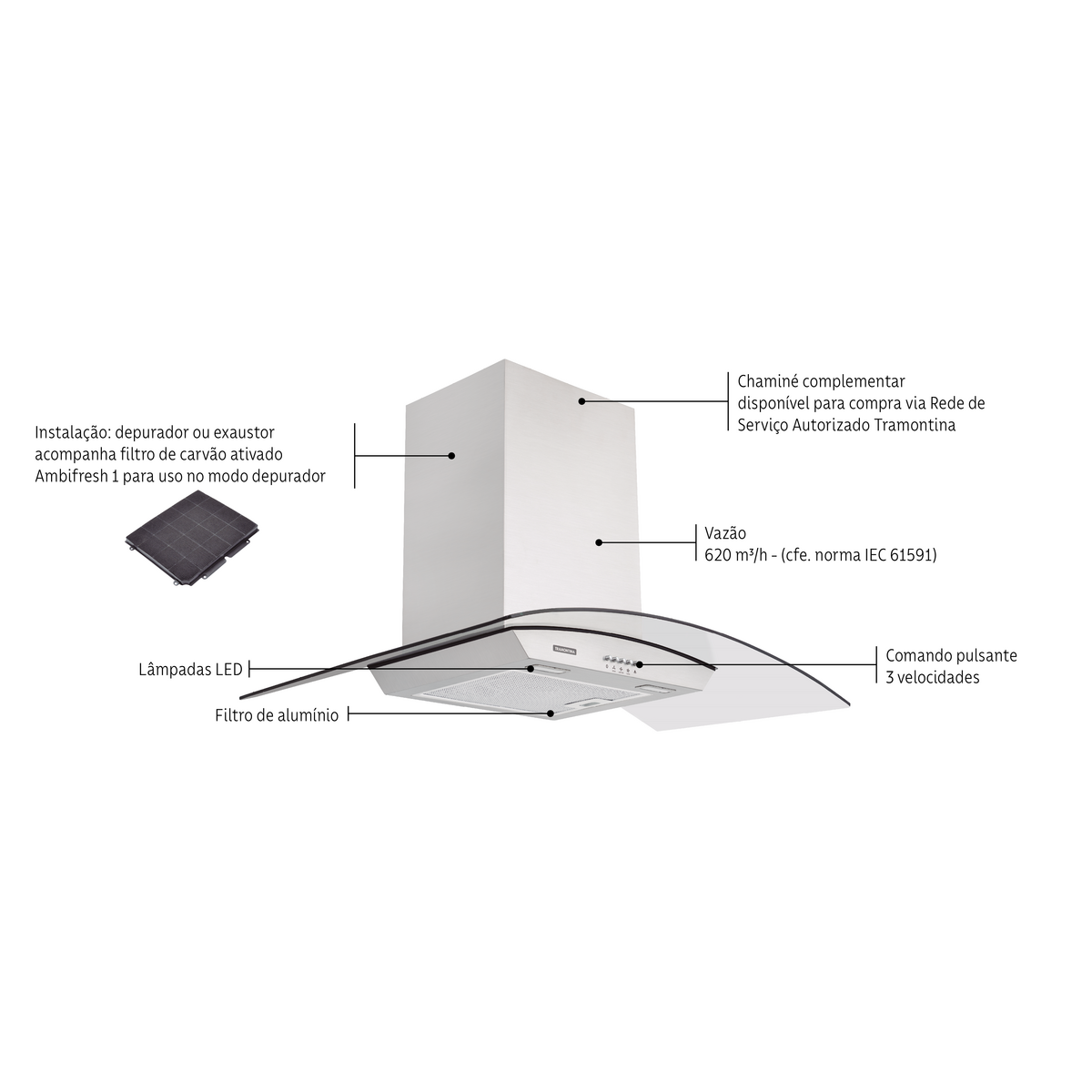 - Compatibilidade: indicada para uso acima de fogões de até 90 cm