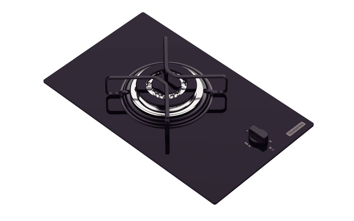 Cooktop a Gás Tramontina Dominó em Vidro Temperado Preto com Trempes em Aço Carbono e Acendimento superautomático 1 Queimador