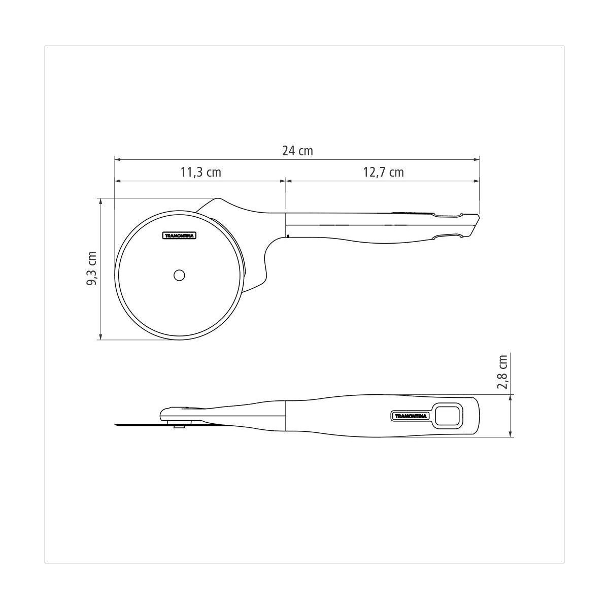 Cortador com lâmina de aço inox que proporciona resistência durante o uso. Cabo de polipropileno com furo passante possibilitando que seja pendurado na sua cozinha. Estrutura de ABS. Pode ir à máquina de lavar louças facilitando seu dia a dia.