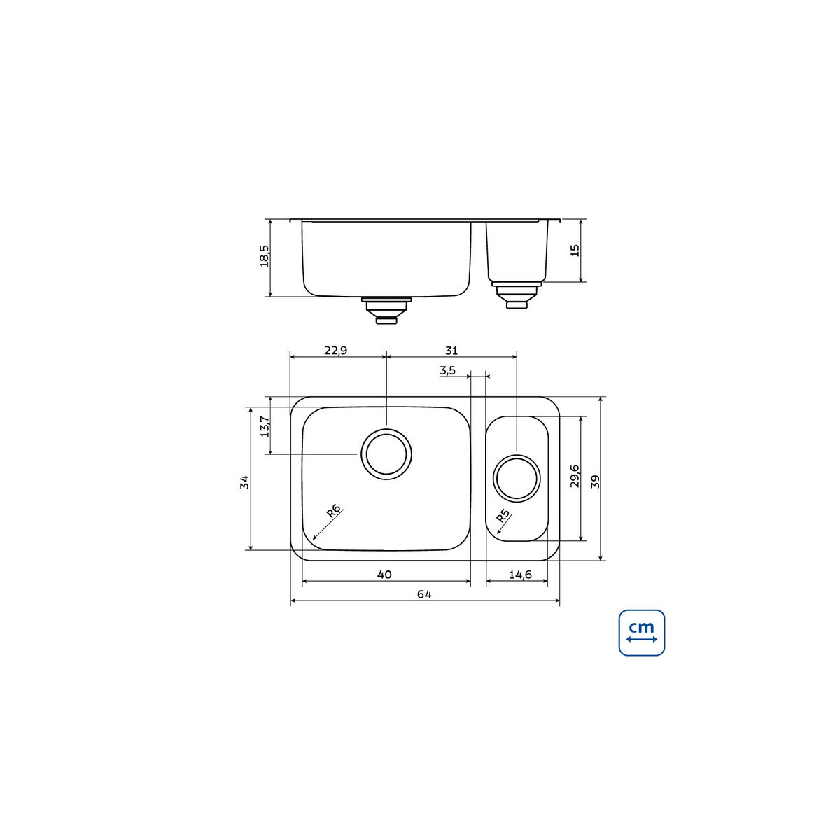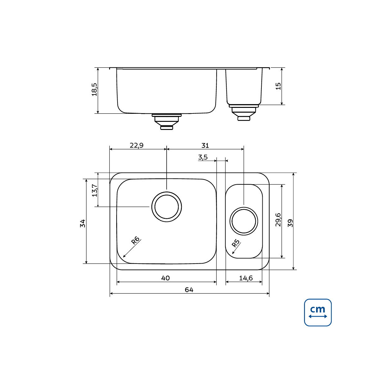 Acabamento escovado 0,8 mm de espessura Acompanha 2 válvulas de Ø 4 1/2"