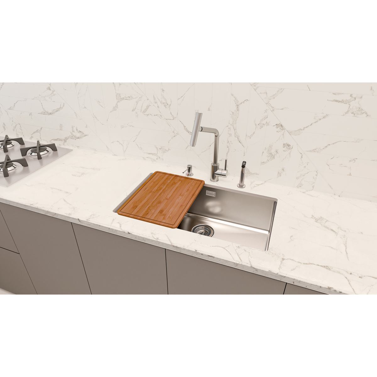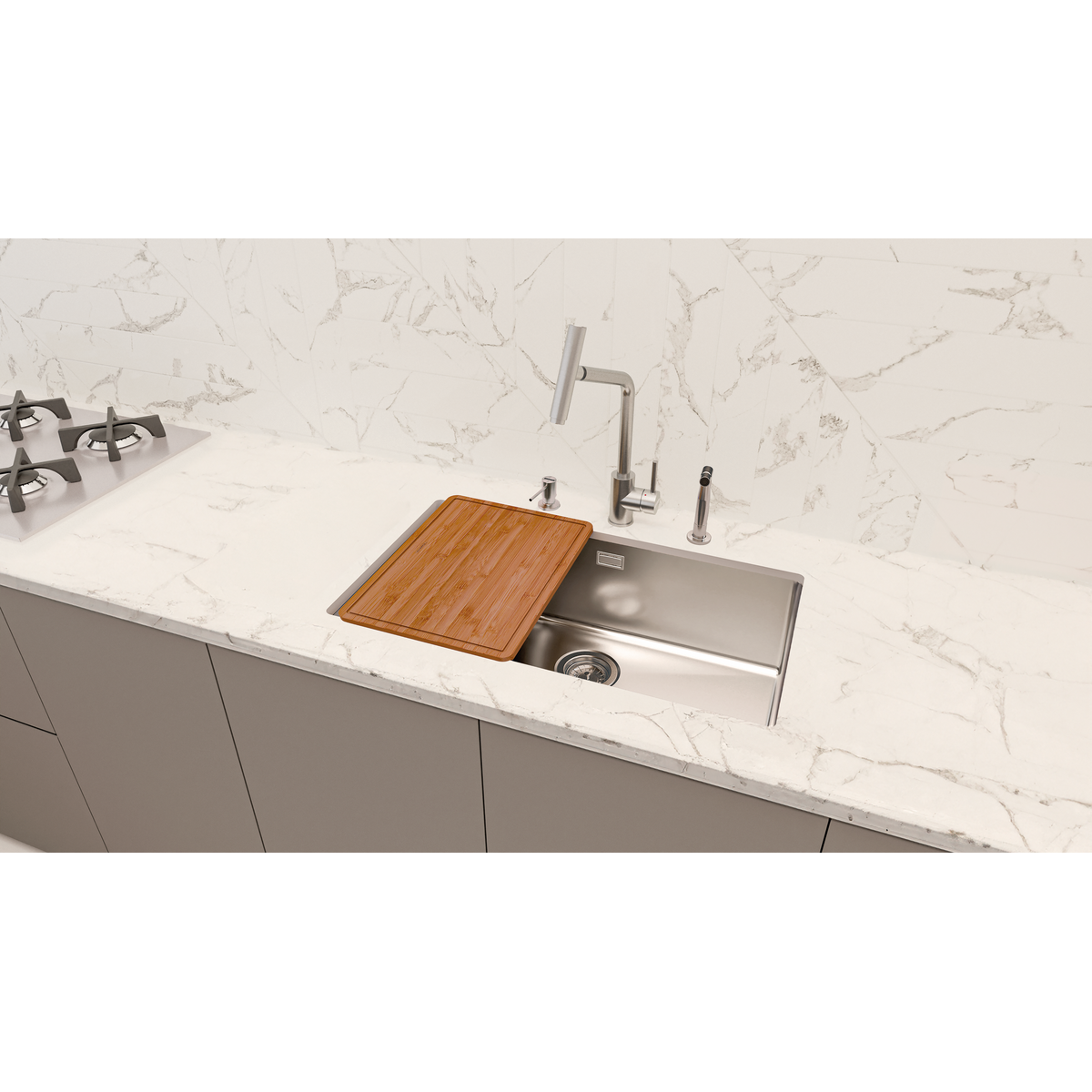 Cuba de embutir Tramontina Design Collection Quadrum Undermount em Aço Inox com Dosador de Sabão e Tábua