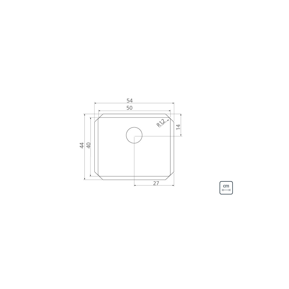 Cuba em aço inox AISI 304 com 1mm de espessura e acabamento acetinado. Cuba com 205 mm de profundidade. Raio interno da cuba de 12 mm.