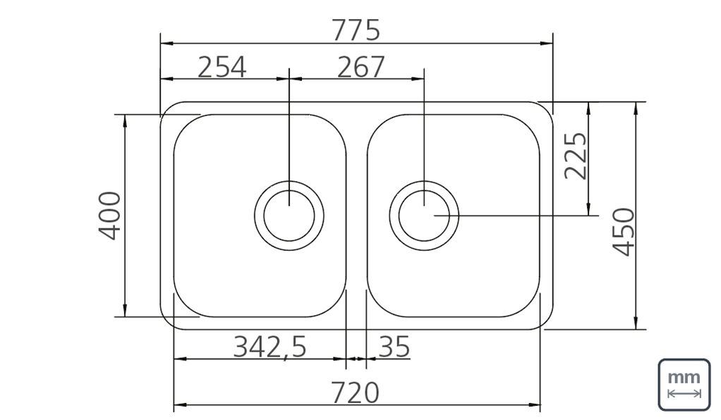 Cuba Dupla Isis Plus 2C 34 BL Tramontina Prime em Aço Inox Alto Brilho 72x40 cm é fabricada em Aço Inox 304, com 0,7 mm de espessura e acabamento alto brilho, garantindo durabilidade e resistência. Possui borda lisa para instalação por baixo da bancada e 17 cm de profundidade.