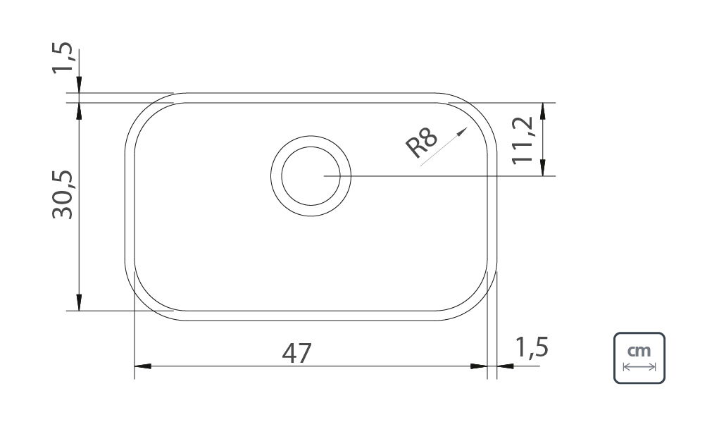 - Produto: Cuba com bordas lisas para instalação por baixo da bancada e 17 cm de profundidade. Opcionalmente é oferecido como acessório a grade aramada para o fundo da cuba.