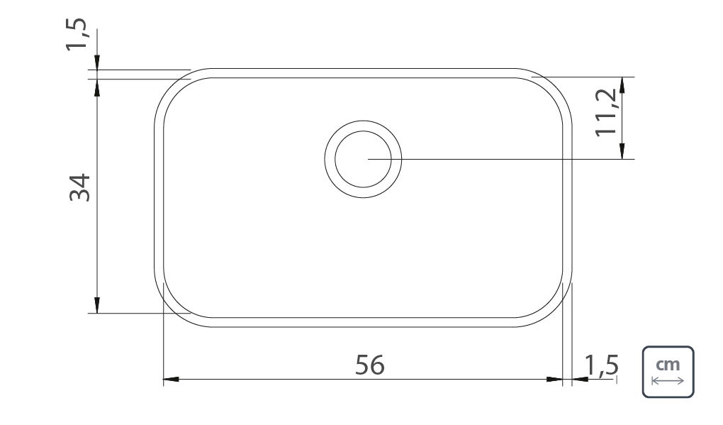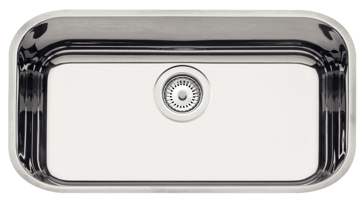 Produto: Cuba com bordas lisas para instalação por baixo da bancada e 14 cm de profundidade. Opcionalmente são oferecidos acessórios como, tábua em madeira, grade aramada, bandeja perfurada e cesta quadrada.