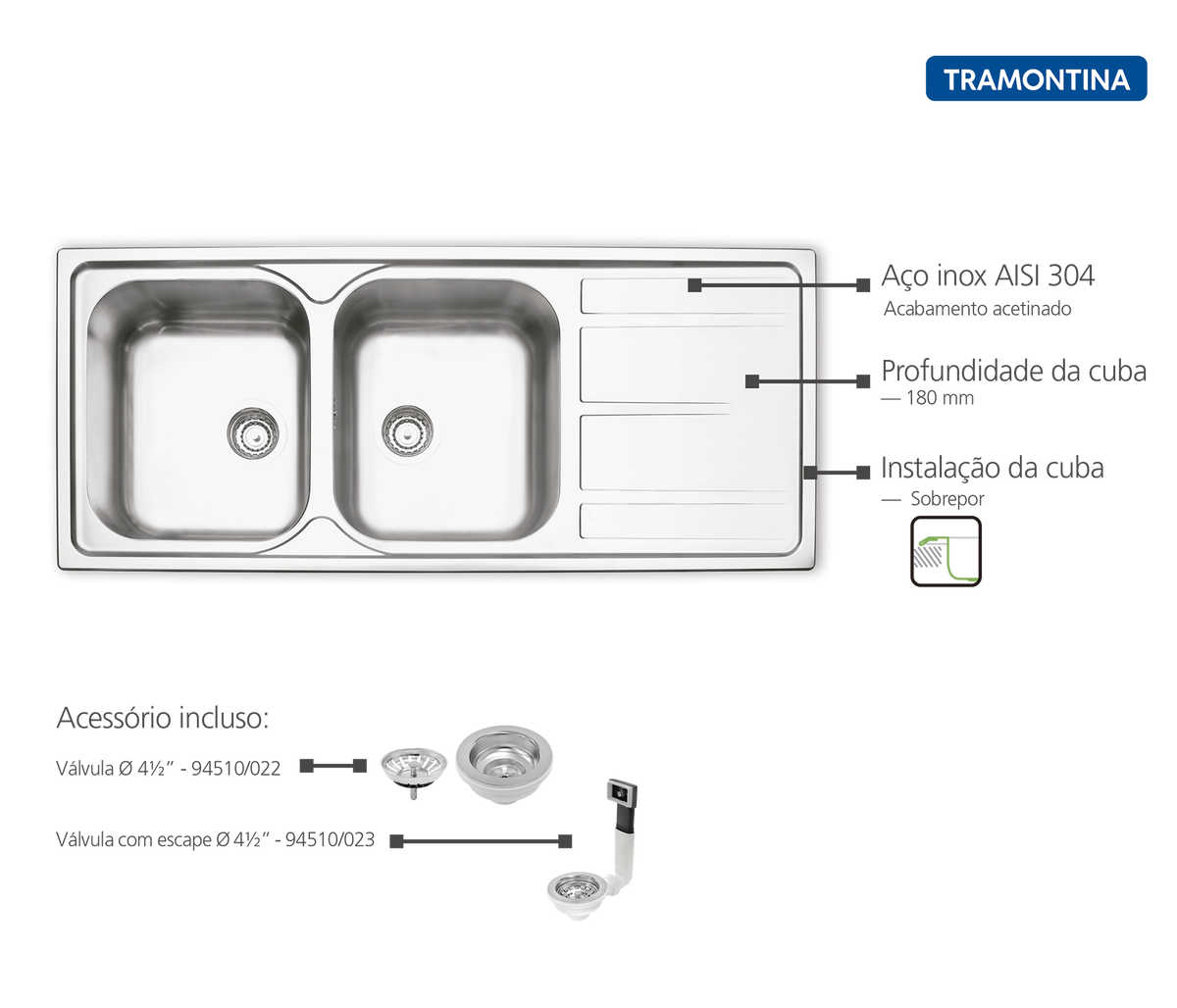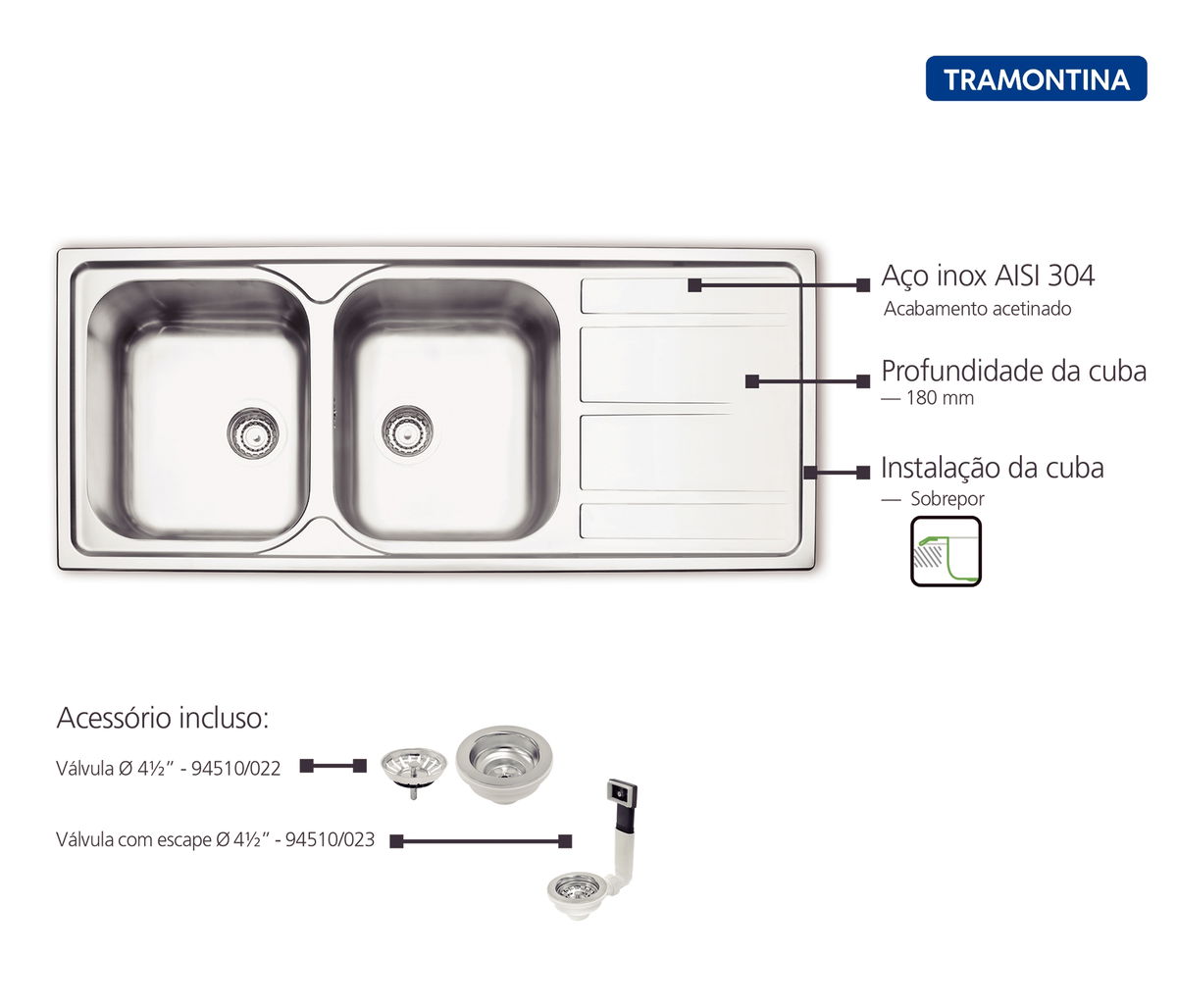 | Acessórios inclusos | - Kit de instalação - 1 Válvula 4 1/2 - 1 Válvula 4 1/2 com escape |