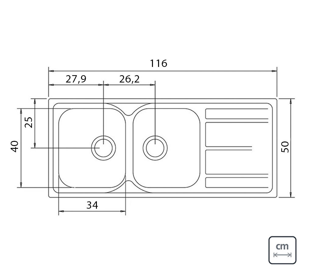 Cozinha ampla e aconchegante é a prioridade de quem gosta de cozinhar e receber amigos. A Cuba de Sobrepor Tramontina Marea com 2 Cubas em Aço Inox com Acabamento Acetinado, 116 x 50 cm com Escorredor e Válvula, da linha Prime, é ideal para compor este ambiente. As cubas possuem válvulas descentralizadas, que facilita a instalação no interior da bancada, além de escorredor com caimento que evita o acúmulo de água.