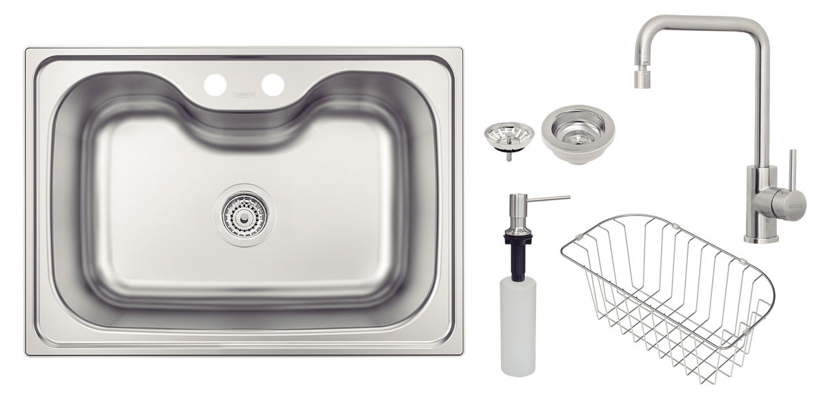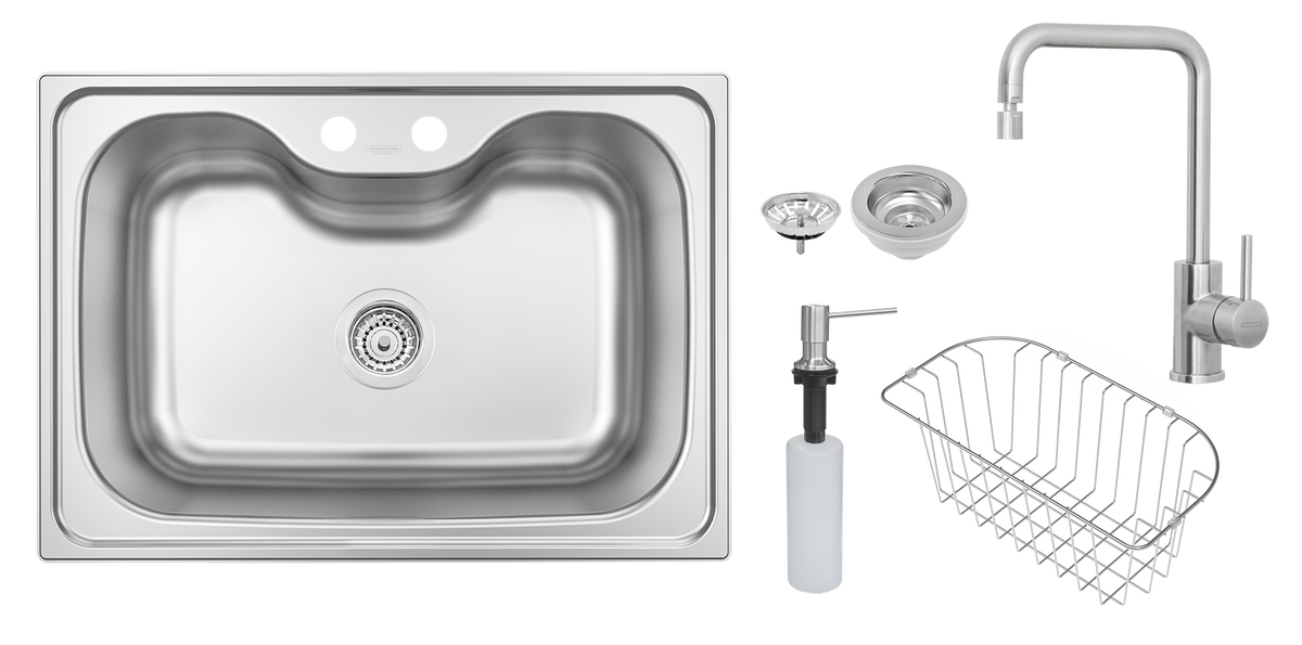 Cuba de Sobrepor Tramontina Morgana 60 FX em Aço Inox com Acabamento Acetinado com Misturador, Válvula, Dosador de Sabão e Cesto 69x49 cm