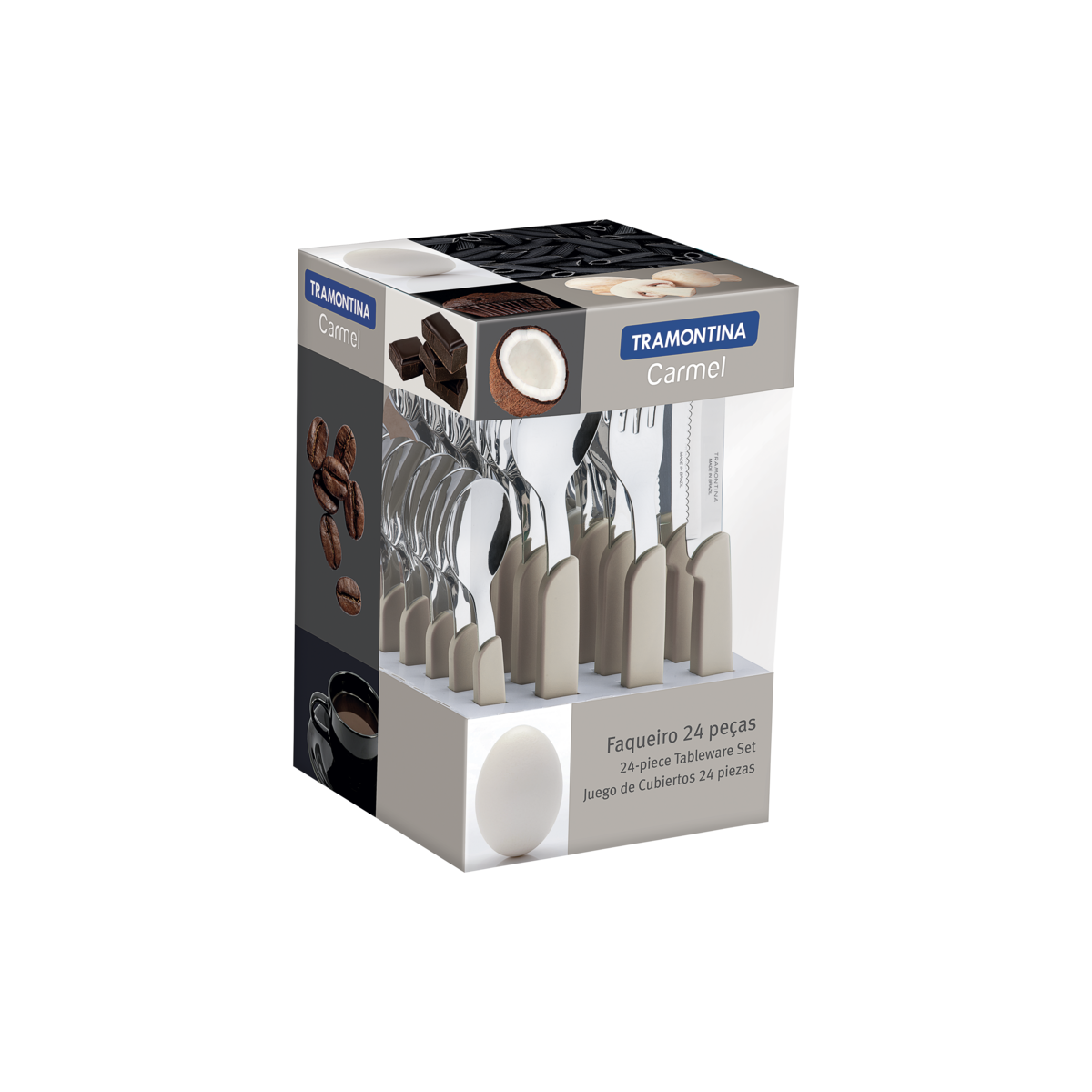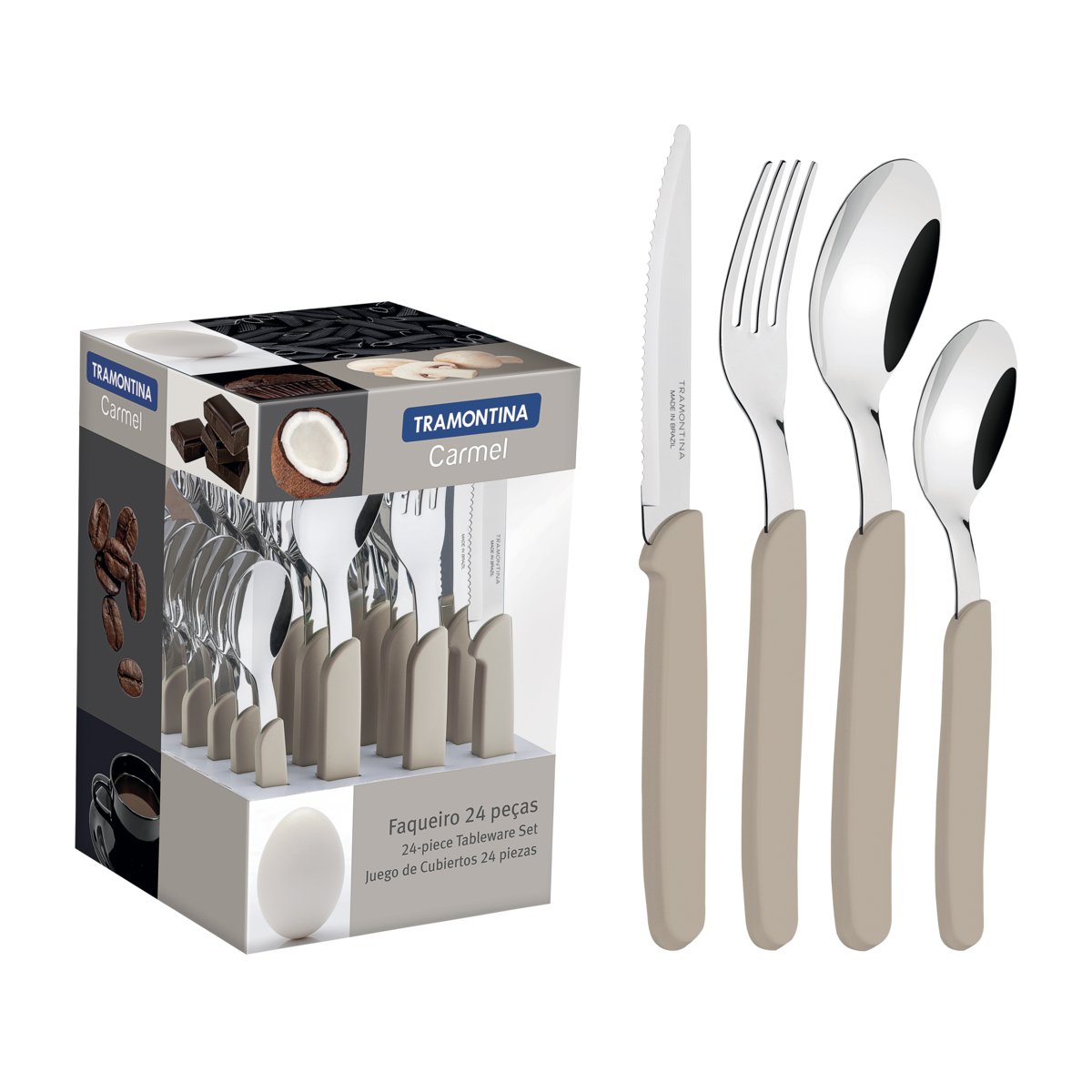Faqueiro Tramontina Carmel com Lâminas em Aço Inox e Cabos de Polipropileno Natural Médio 24 Peças