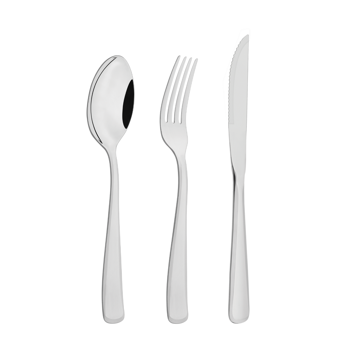 As peças são acondicionadas em uma bela embalagem. Totalmente feitas de aço inox, altamente duráveis, mantêm suas características originais, preservando a beleza, a higiene e a durabilidade do material. Colheres com bojo em formato simétrico e bordas cuidadosamente arredondadas. Garfos com dentes polidos na parte interna, com formato apropriado para a boca e bordas arredondadas para proporcionar maior conforto no uso. Facas totalmente temperadas, que garantem maior durabilidade no fio de corte e maior resistência à corrosão, e por suas características de temperabilidade, não riscam as porcelanas. Acabamento em brilho, com detalhes no cabo. Serviço para 12 pessoas. Podem ser lavadas diariamente na máquina de lavar louças.