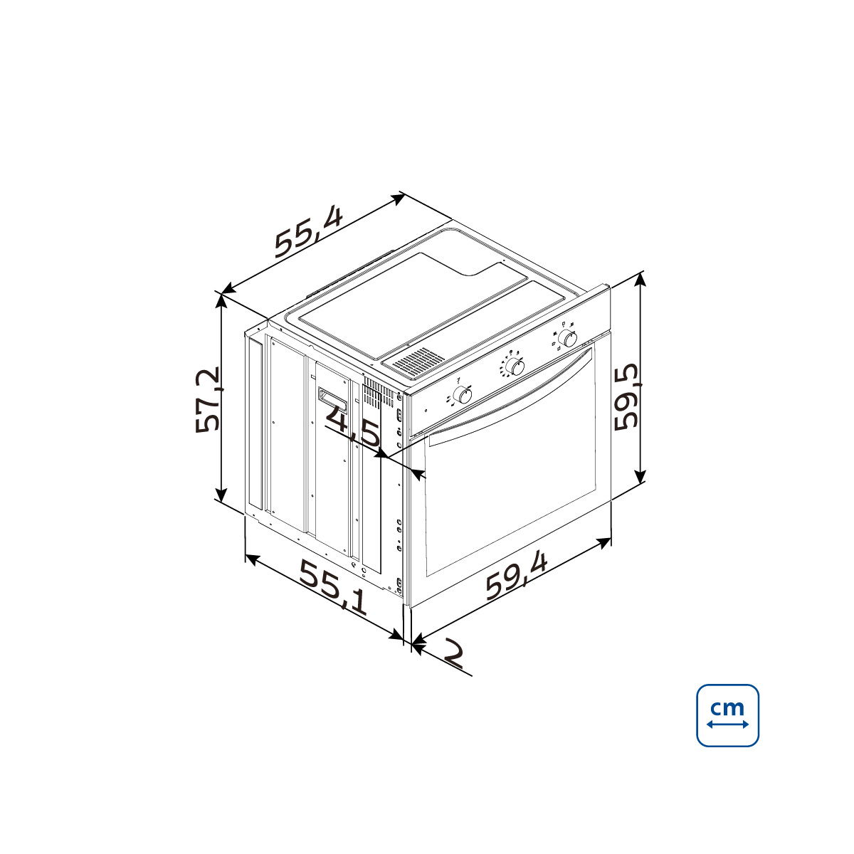 - Largura: 571 mm