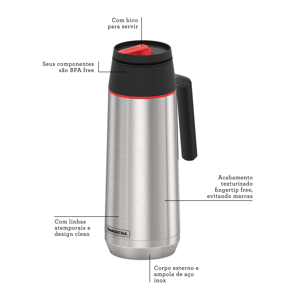 Garrafa Térmica Tramontina Exata em Aço Inox com Ampola de Aço 750 ml