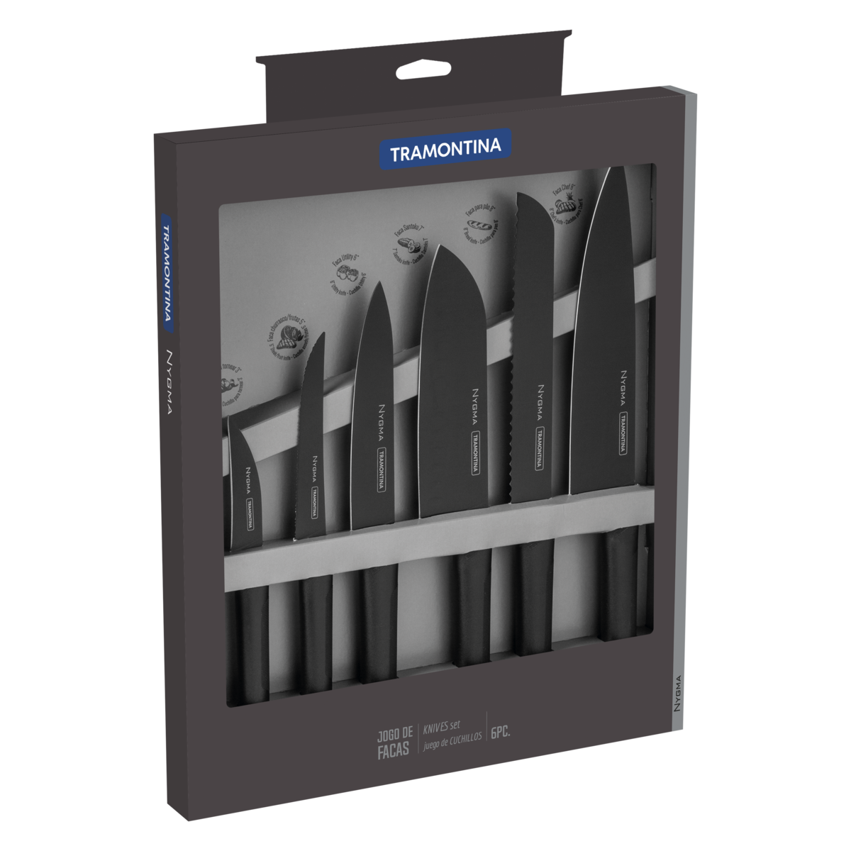 Jogo de Facas Tramontina Nygma com Lâminas em Aço Inox e Cabos de Polipropileno Texturizados Preto 6 Peças