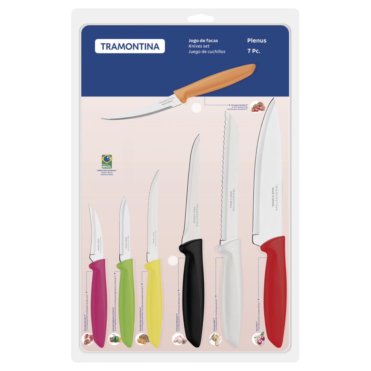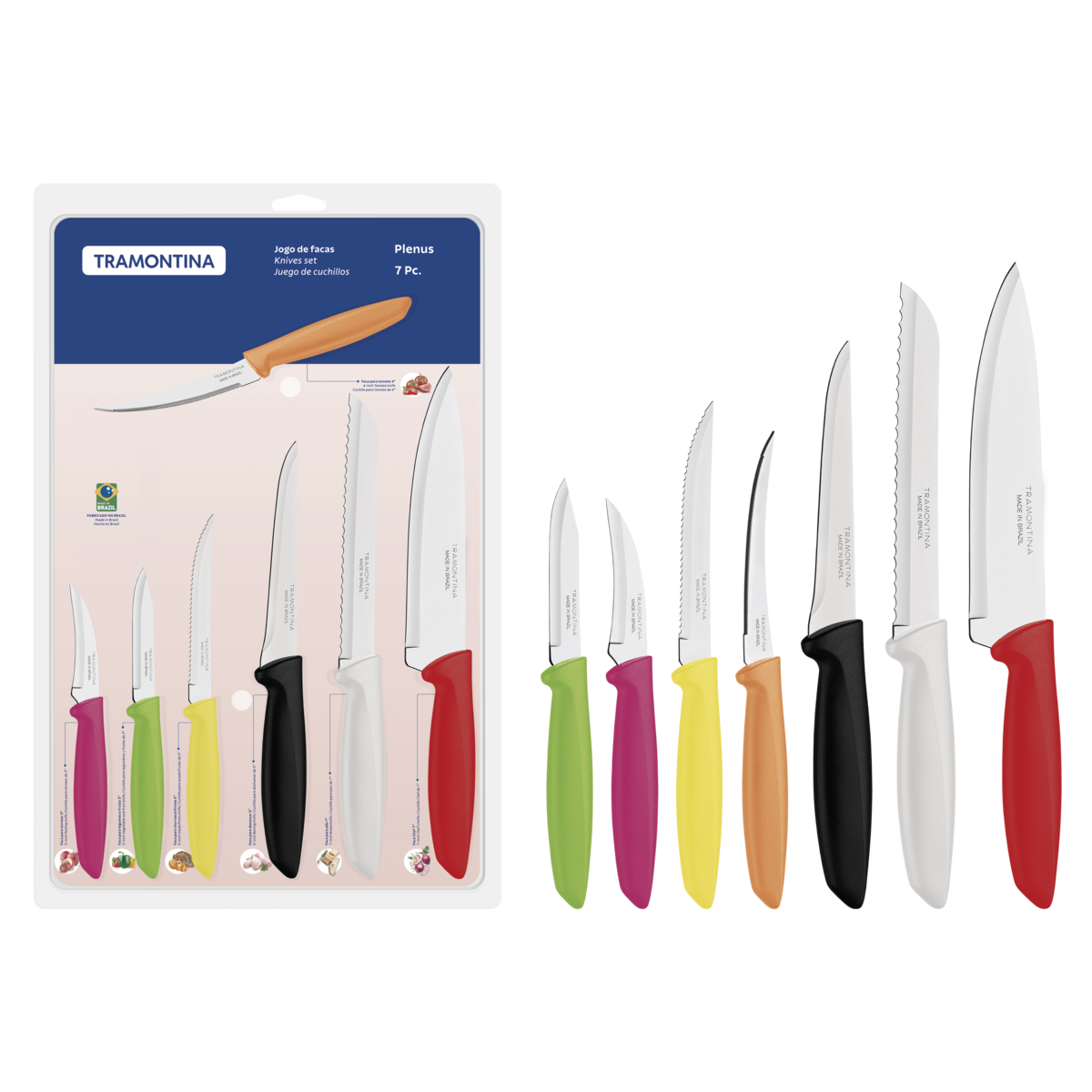 Jogo de Facas Tramontina Plenus com Lâminas em Aço Inox e Cabos de Polipropileno Colorido 07 Peças