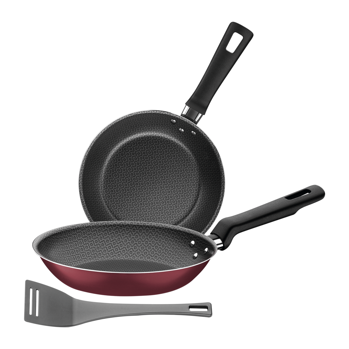 Jogo de Frigideiras Tramontina Loreto em Alumínio com Revestimento Interno e Externo Antiaderente Starflon Max com Cabos de Baquelite Vermelho 3 Peças