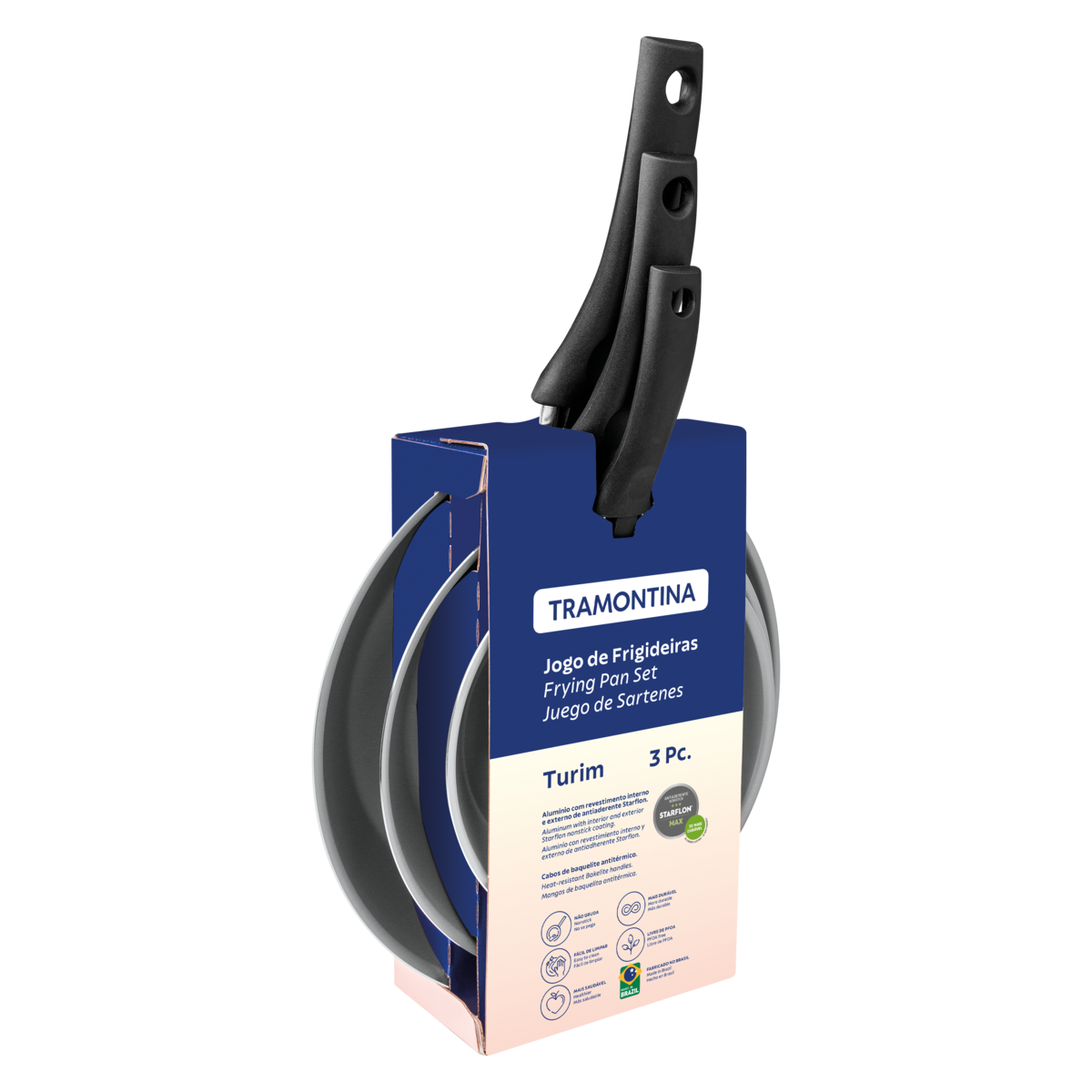 Jogo de Frigideiras Tramontina Turim em Alumínio com Revestimento Interno e Externo em Antiaderente Starflon Max Chumbo 03 Peças