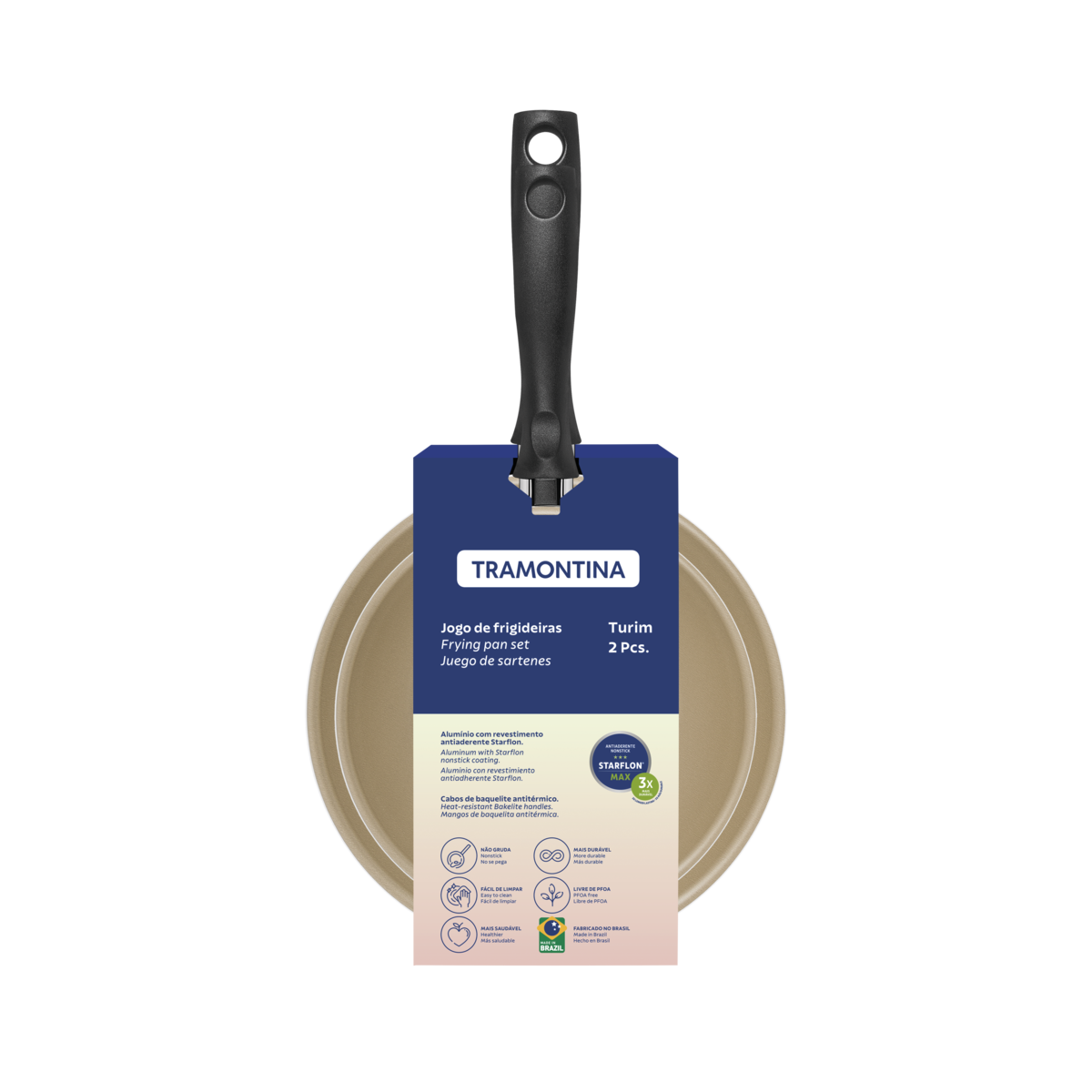 Corpo de alumínio com espessura de 1,2 mm que proporciona cozimento rápido e uniforme. Revestimento interno e externo de antiaderente Starflon Max que não gruda, é fácil de limpar, mais durável e não é prejudicial à saúde, pois é livre de PFOA. Cabos de baquelite antitérmico que oferecem segurança durante o manuseio. Podem ir à máquina de lavar louças facilitando seu dia a dia.