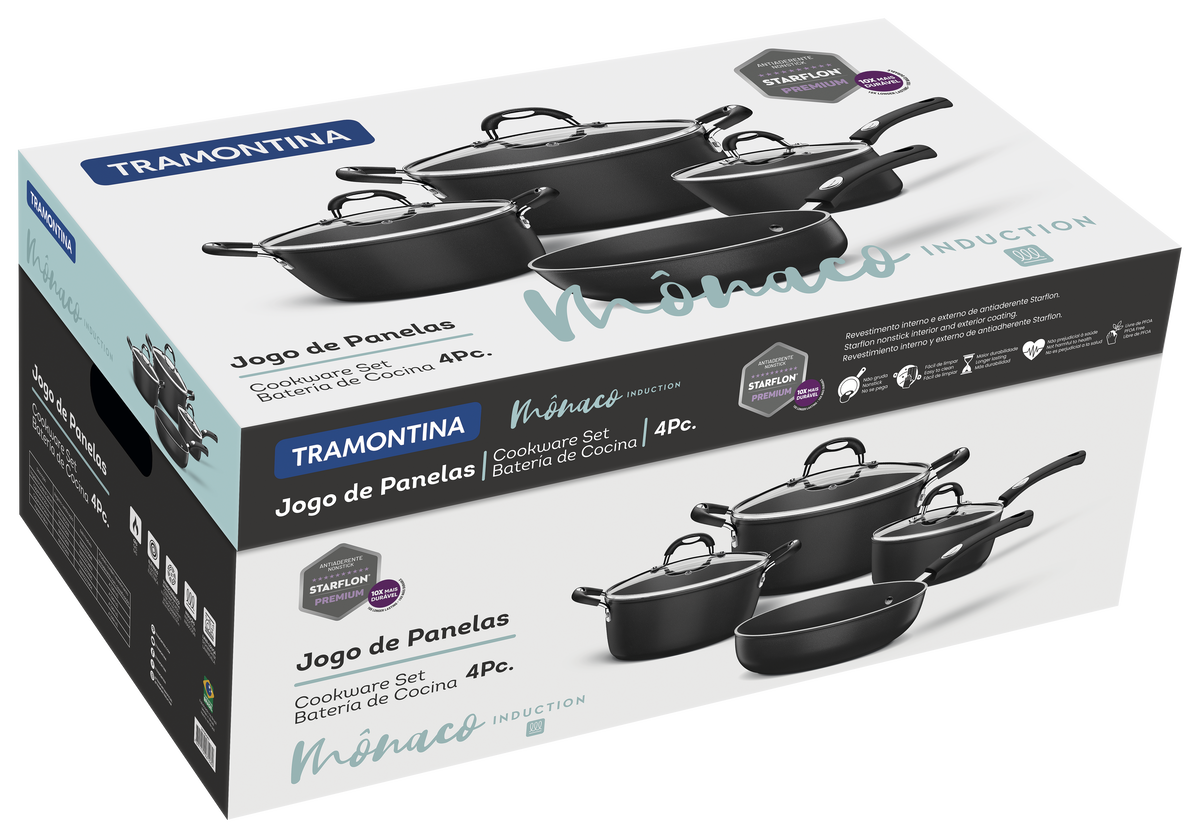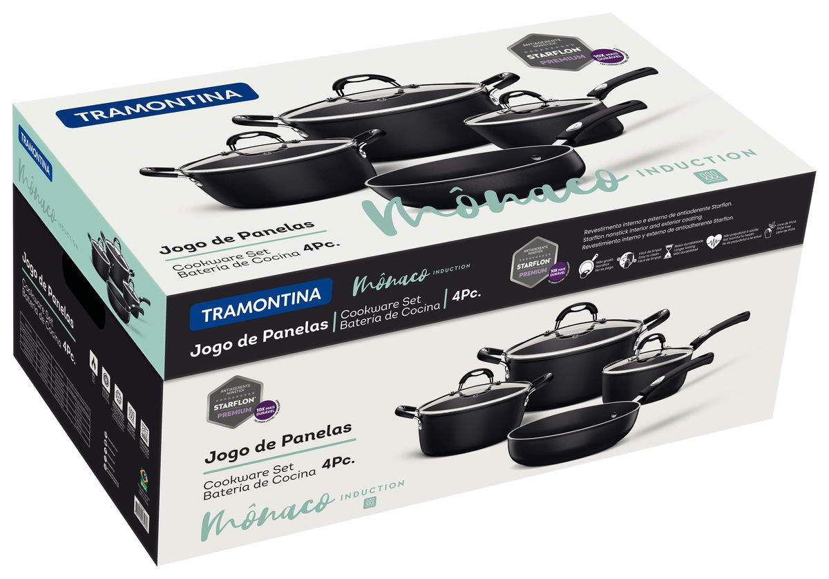 Jogo de Panelas Tramontina Mônaco Induction em Alumínio com Revestimento Interno e Externo Antiaderente Starflon Premium Preto 4 Peças
