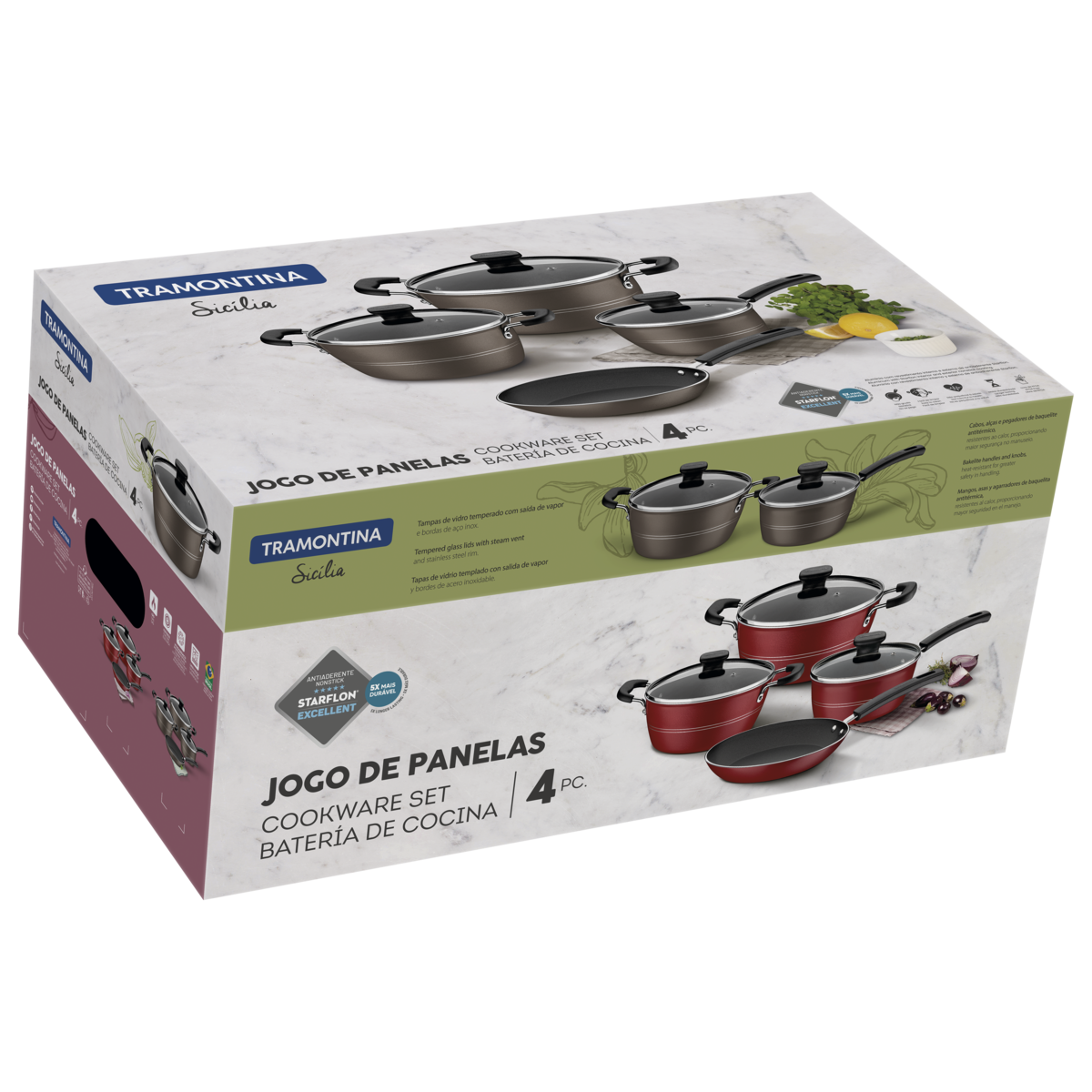 Jogo de Panelas Tramontina Sicília em Alumínio com Revestimento Interno e Externo Antiaderente Starflon Excellent Vermelho 4 Peças