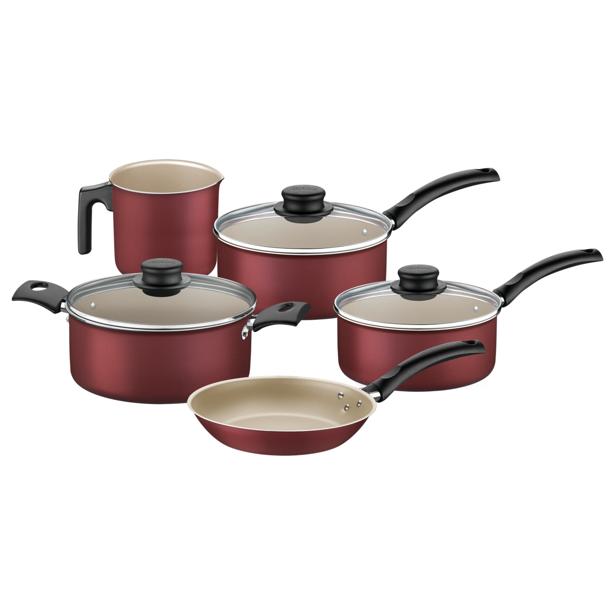 Jogo de Panelas Tramontina Turim em Alumínio com Revestimento Interno e Externo em Antiaderente Starflon Max Vermelho 5 Peças