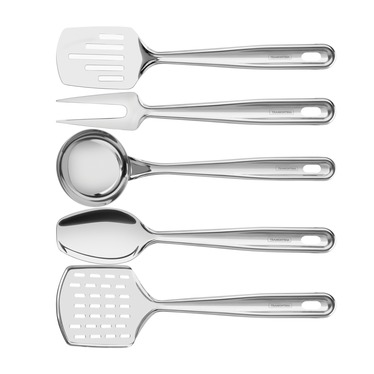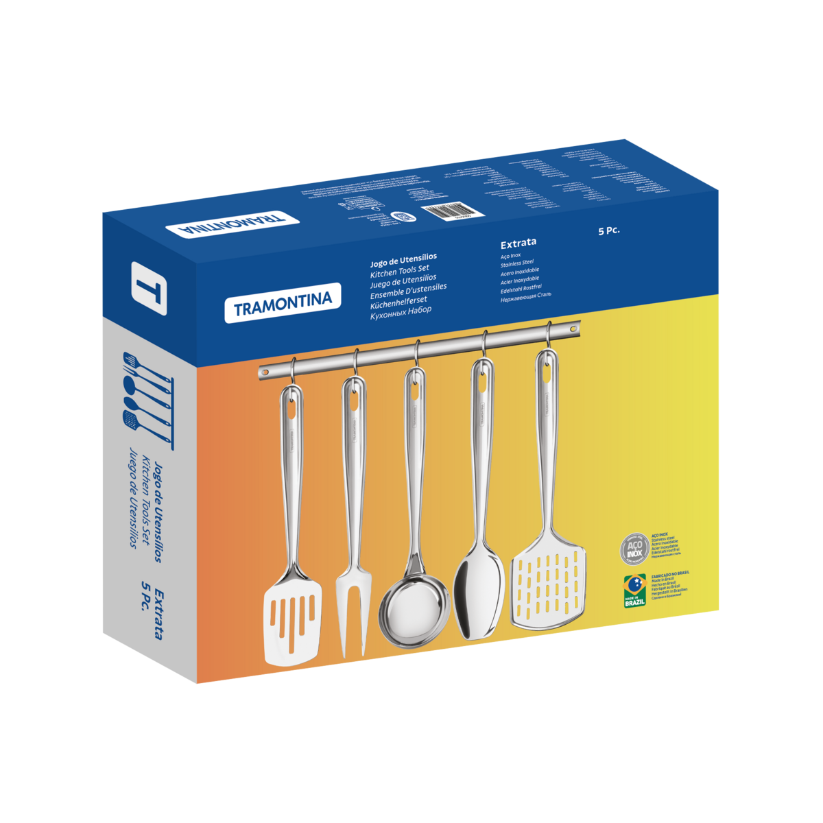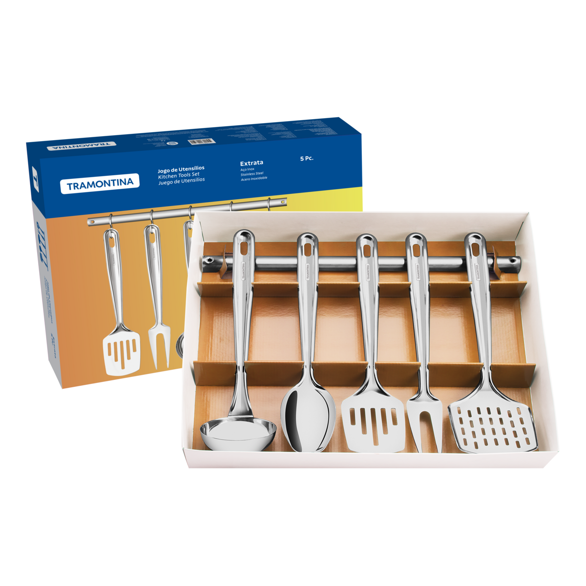 Jogo de Utensílios Tramontina Extrata em Aço Inox com Suporte de Parede 5 Peças