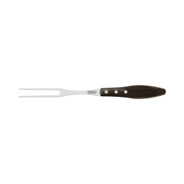 1x Garfo Trinchante Tramontina em Aço Inox e Cabo Castanho Polywood- Altura: 18 mm