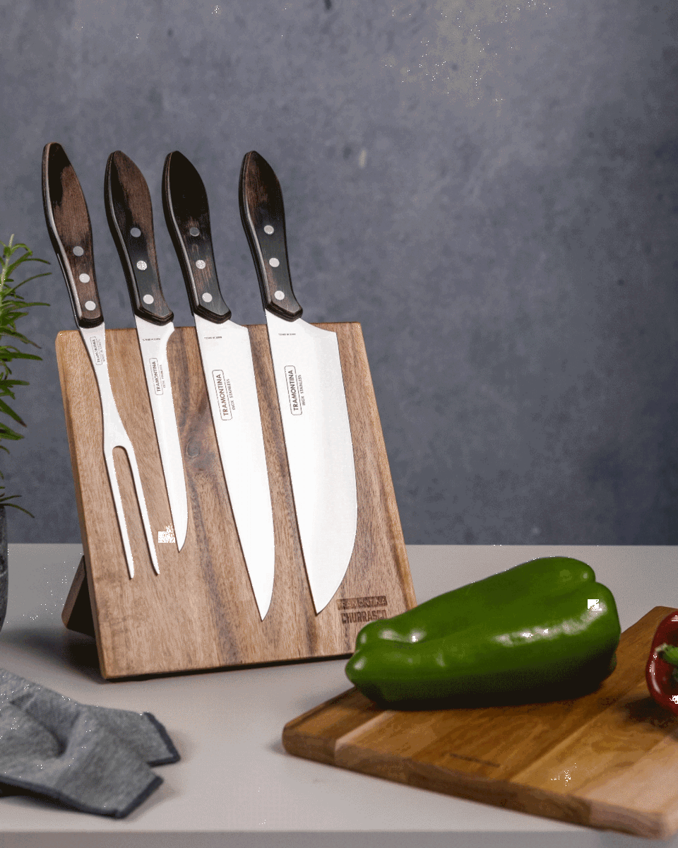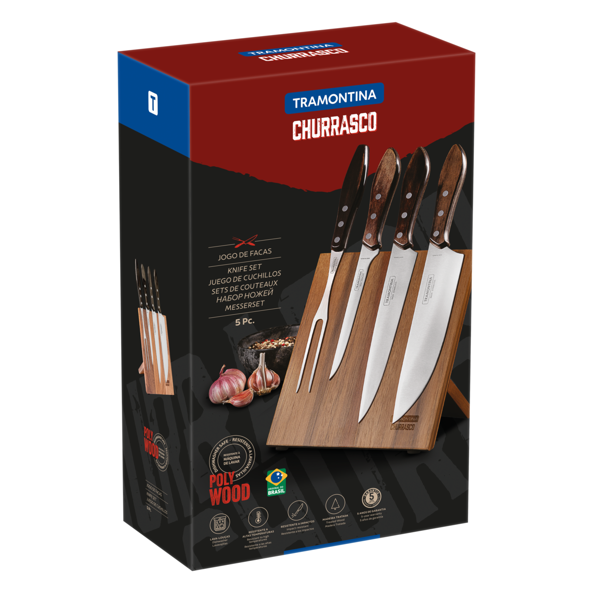 Jogo para Churrasco Tramontina com Lâminas em Aço Inox e Cabos em Madeira Polywood Castanho 5 Peças