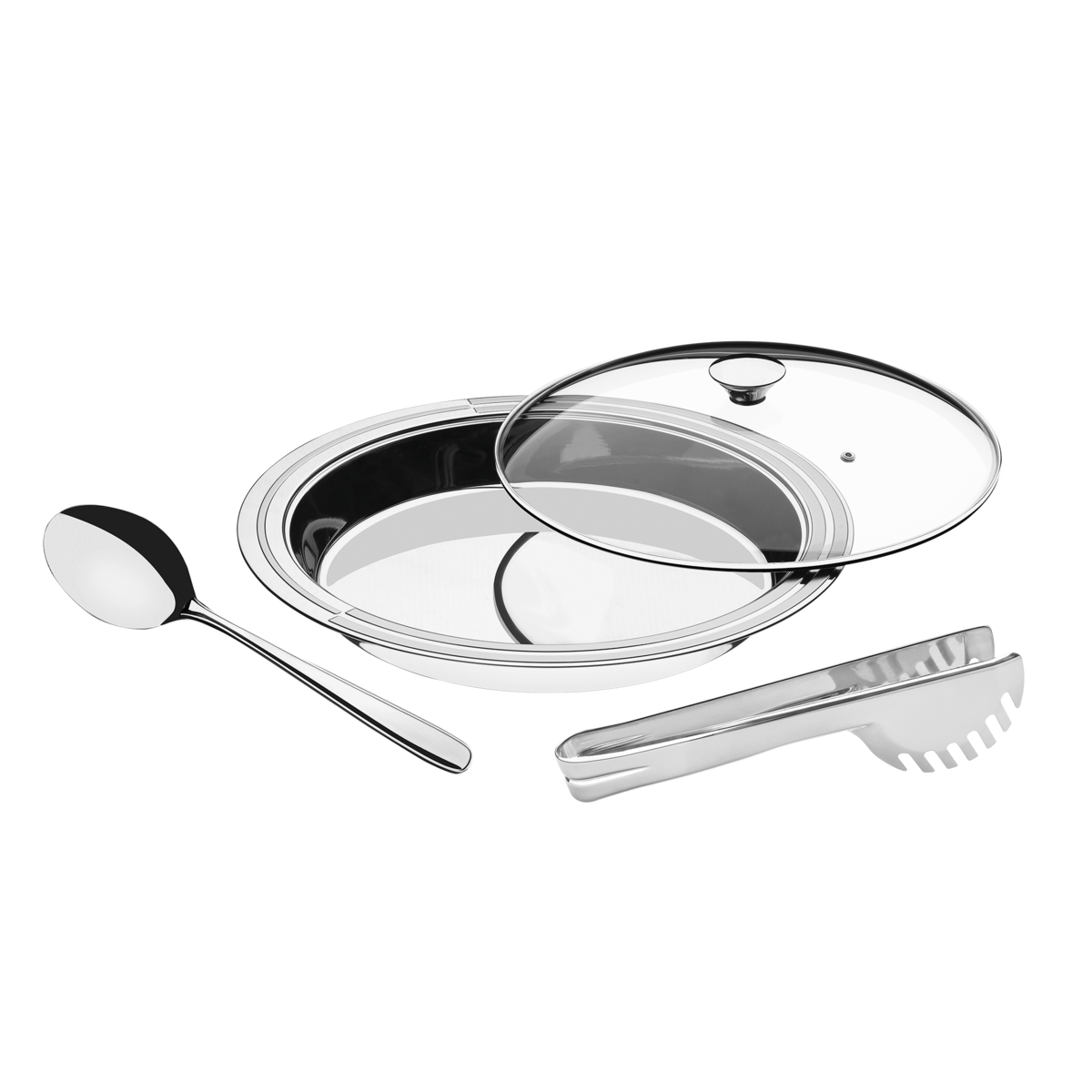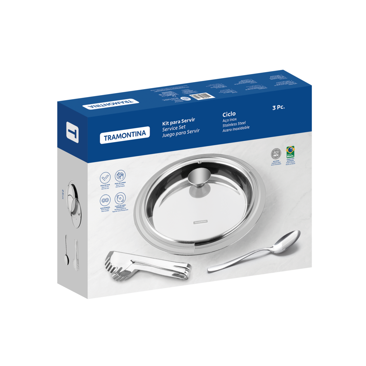 Kit para Servir Tramontina Ciclo Redondo em Aço Inox com Tampa de Vidro 3 Peças