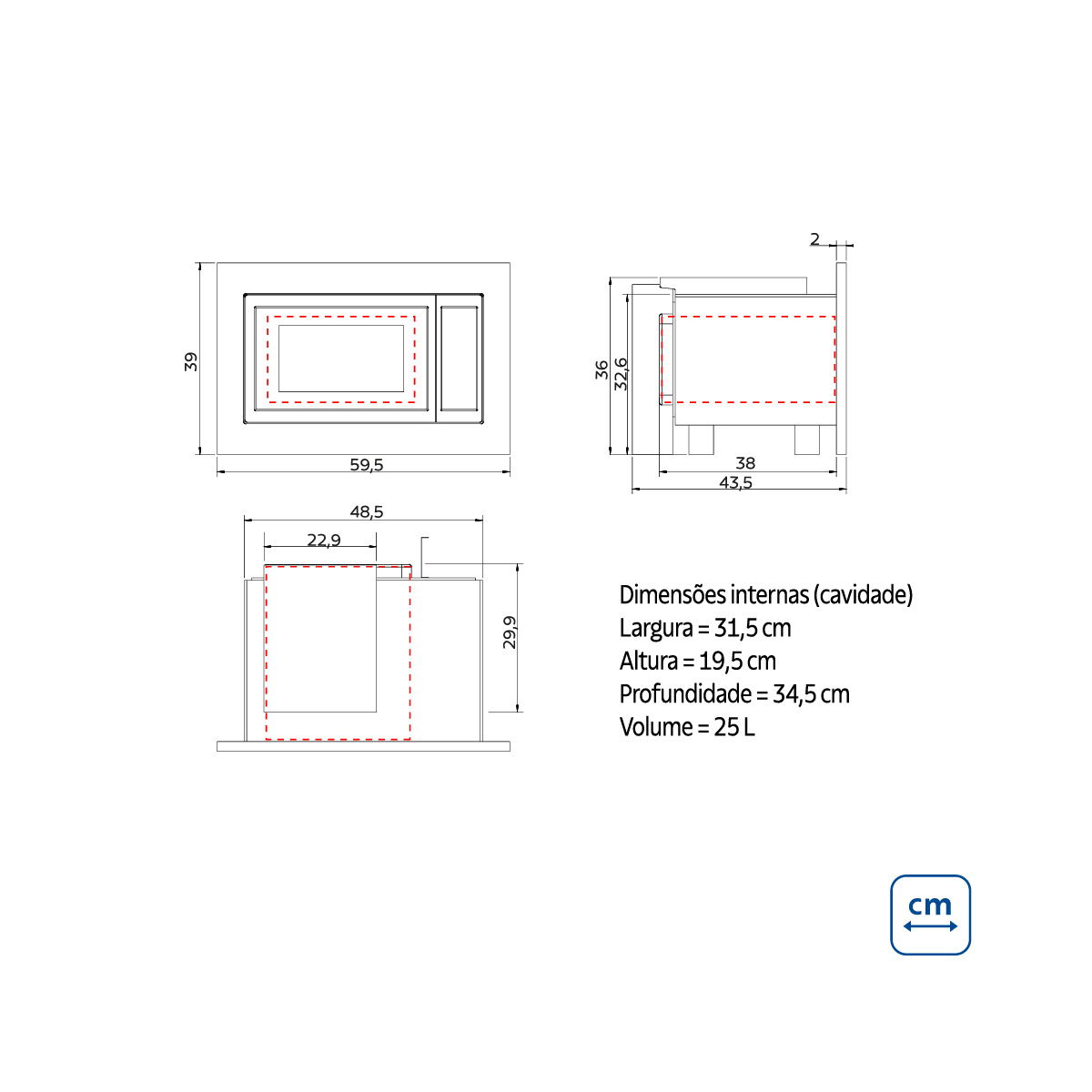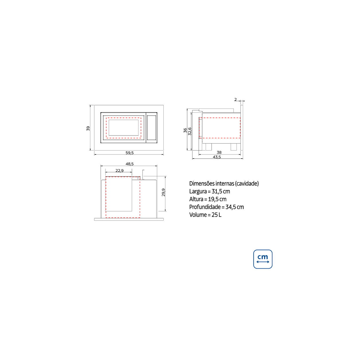 Micro-ondas de Embutir Tramontina Inox Easy 60 25 L em Aço Inox com Acabamento Acetinado 8 Funções