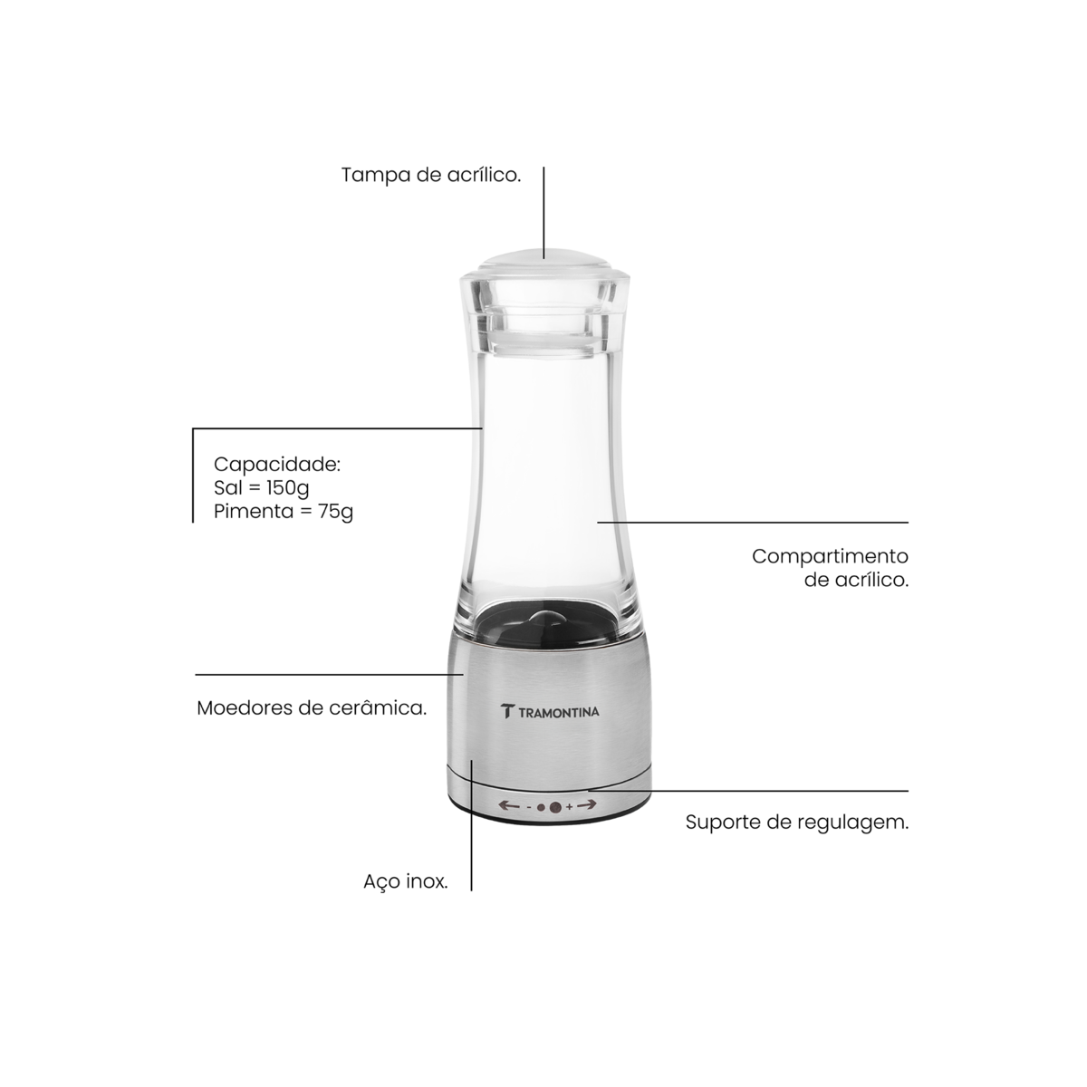 Moedor Tramontina Realce para Sal ou Pimenta em Acrílico e Aço Inox com Moinho em Cerâmica