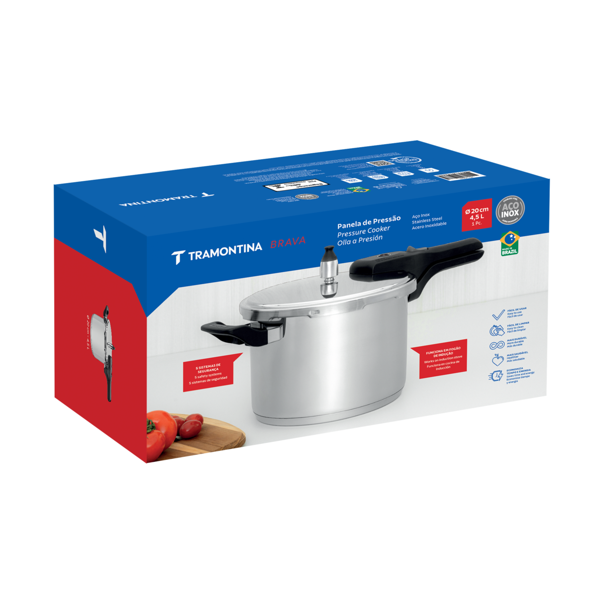 Panela de Pressão Tramontina Brava de 80 kPa de pressão de trabalho.
