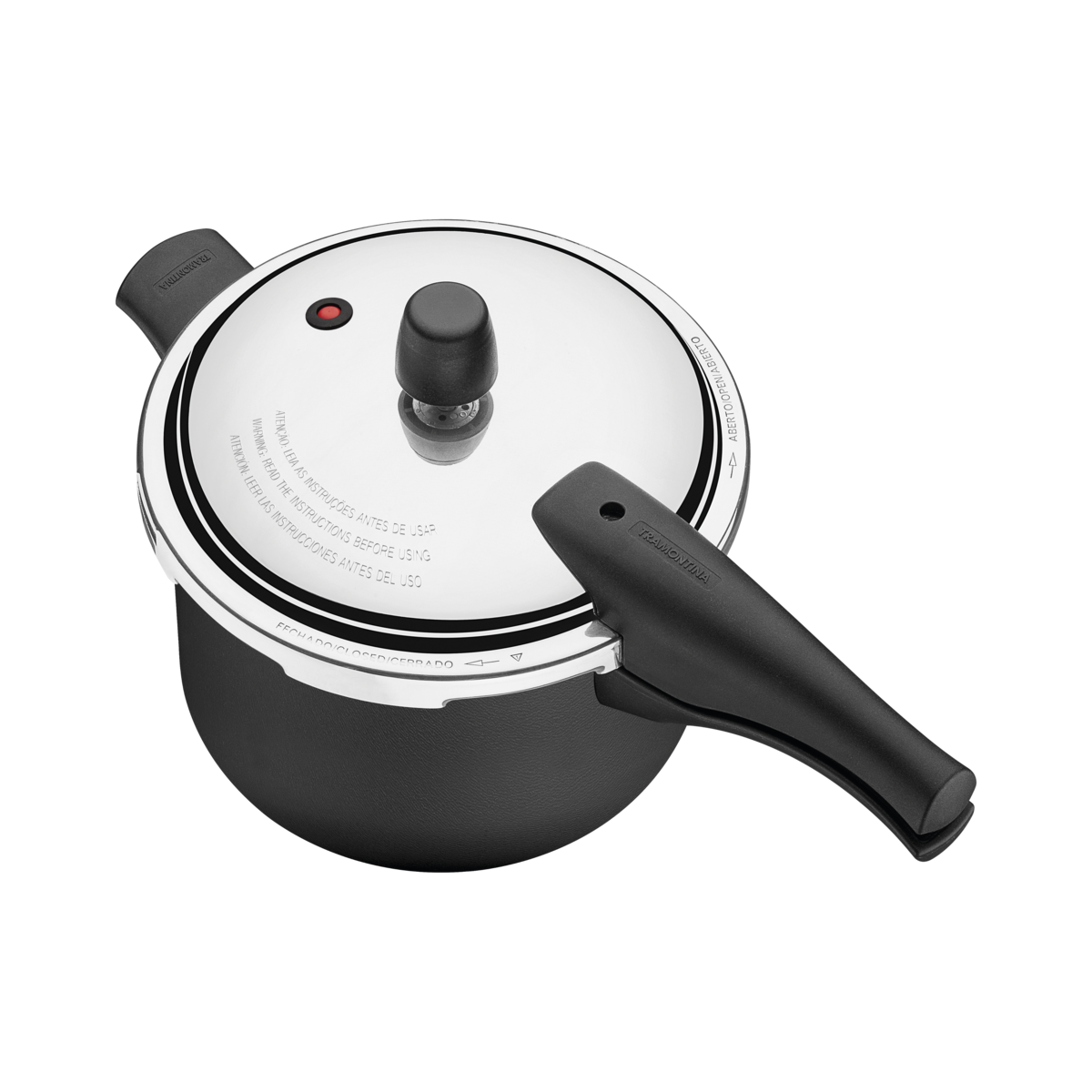 Corpo de alumínio com espessura de 3,2 mm que proporciona cozimento rápido e uniforme. Com revestimento interno e externo de antiaderente Starflon Max que não gruda, é fácil de limpar, mais durável e não é prejudicial à saúde. Tampa de alumínio com acabamento externo polido e interno satinado. Alça, cabos superior e inferior de baquelite antitérmico que oferecem segurança durante o manuseio. Após atingir a pressão interna, reduza a intensidade da fonte de calor.