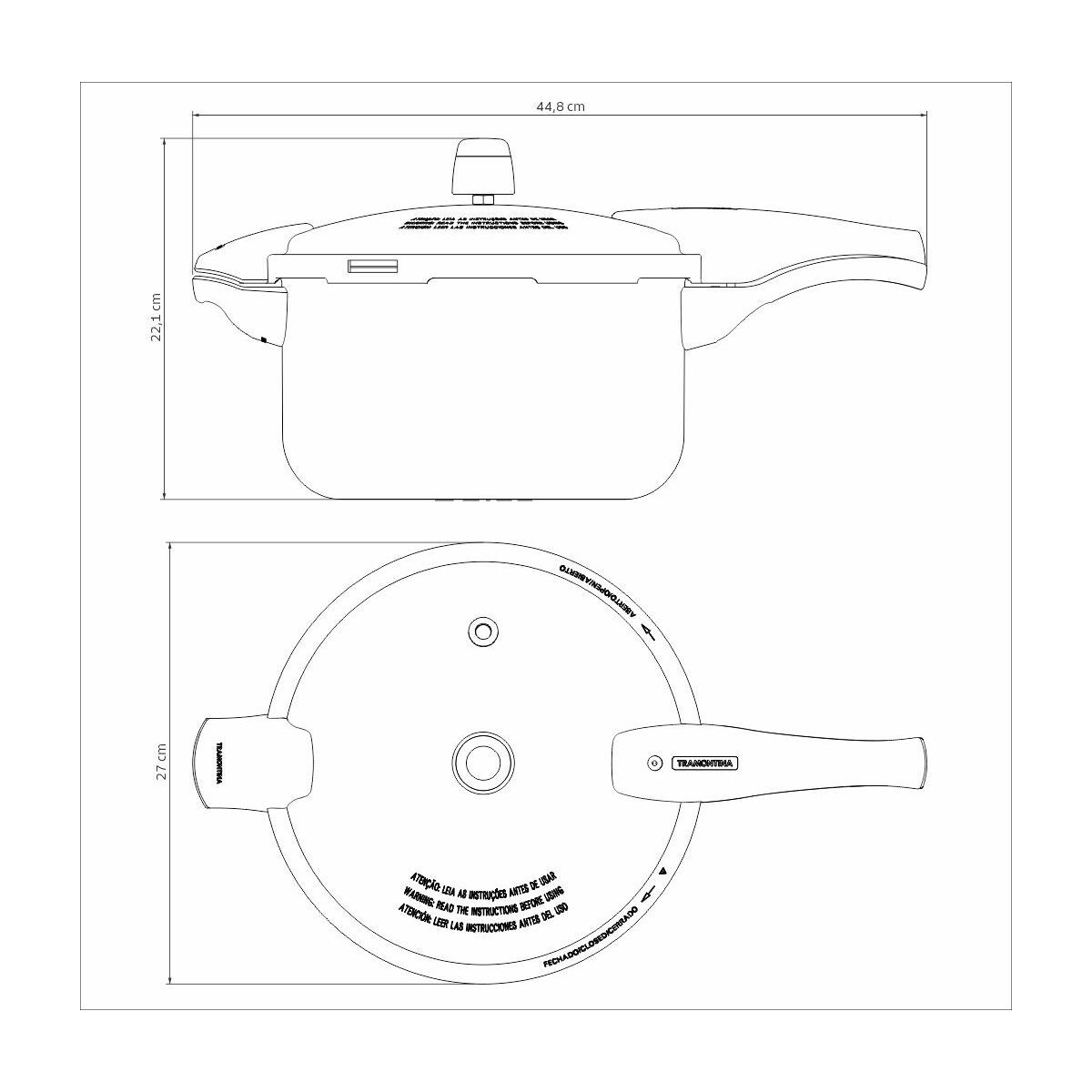 Corpo de alumínio com espessura de 3,2 mm que proporciona cozimento rápido e uniforme. Com revestimento interno e externo de antiaderente Starflon Max que não gruda, é fácil de limpar, mais durável e não é prejudicial à saúde. Tampa de alumínio com acabamento externo polido e interno satinado. Alça, cabos superior e inferior de baquelite antitérmico que oferecem segurança durante o manuseio.