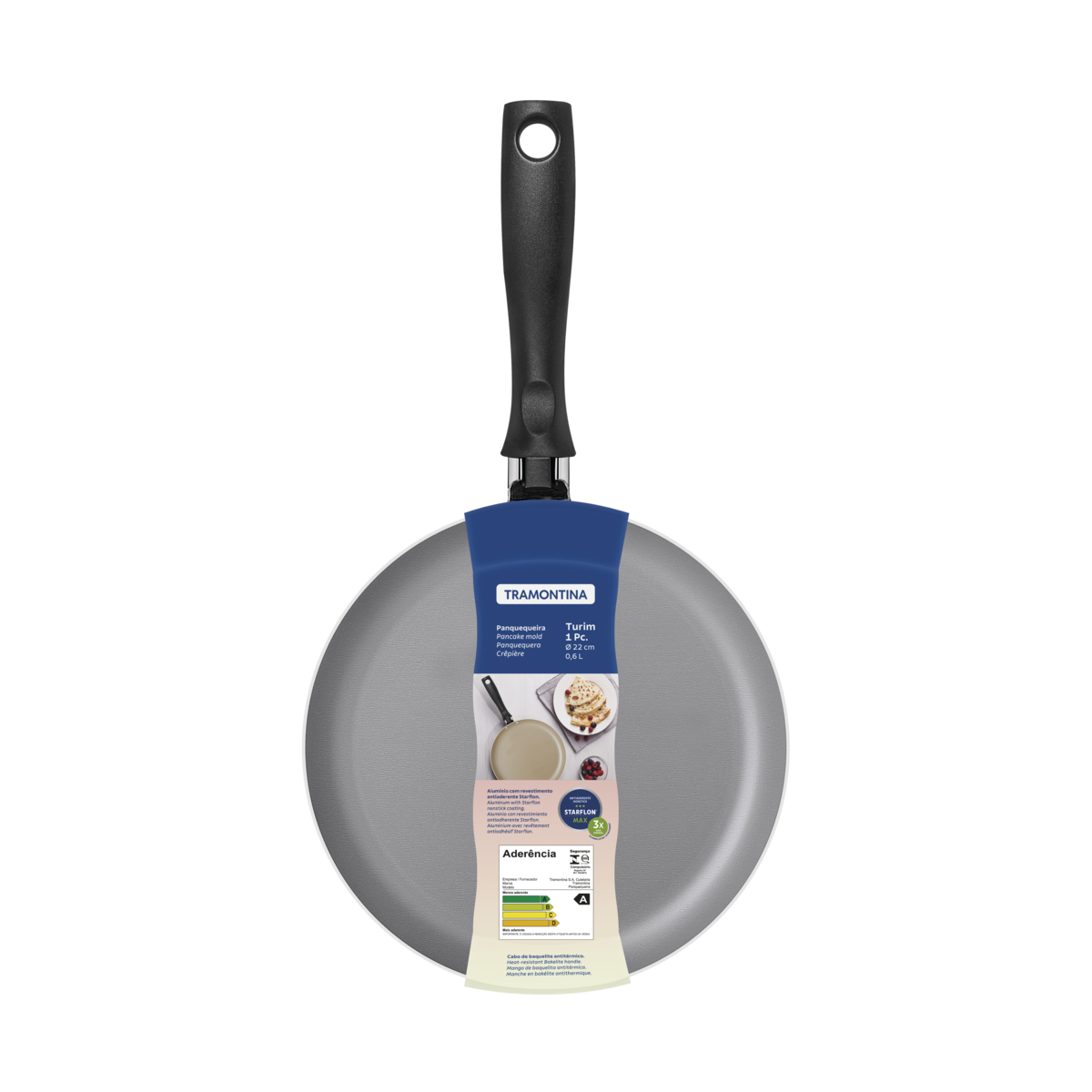 Panquequeira Tramontina Turim em Alumínio com Revestimento Interno e Externo em Antiaderente Starflon Max Chumbo 22 cm 0,6 L