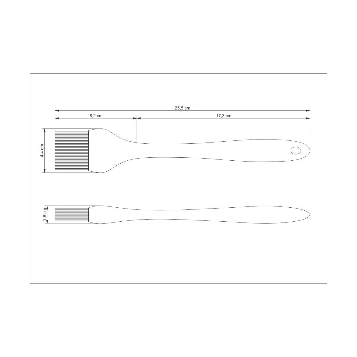 Pincel de silicone com reforço interno, que resiste até uma temperatura de 230 °C. Utensílio ideal para uso em panelas com revestimentos antiaderentes e cerâmicos, pois não danifica o produto. Pode ir à máquina de lavar louças facilitando seu dia a dia.