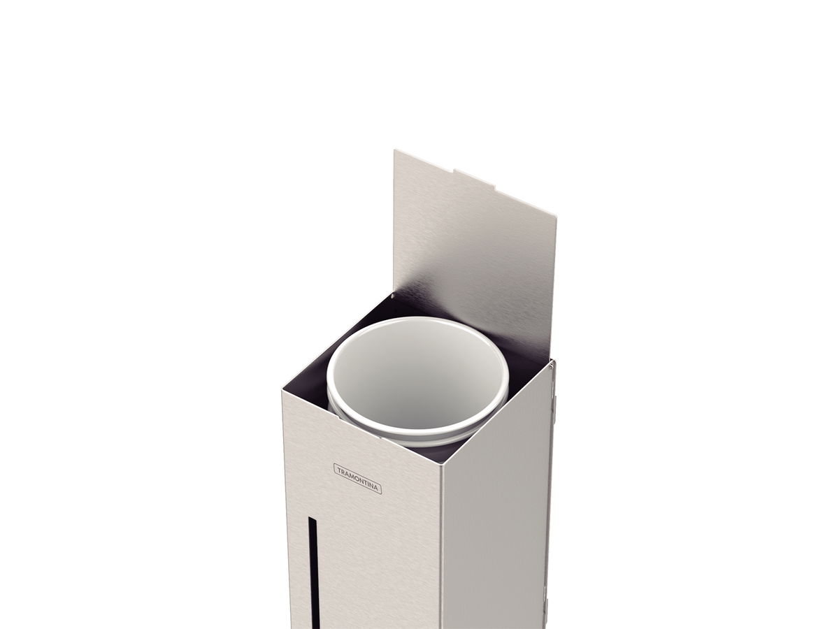 Leve praticidade e alta qualidade para seus ambientes comerciais ou corporativos, com o Suporte para Copos Descartáveis Tramontina em Aço Inox. Desenvolvido em aço inox com acabamento Scotch Brite e espessura de 0,6 milímetros, ele vai lhe garantir alta resistência e maior durabilidade. Ele possui capacidade para 100 copos de 7 centímetros de diâmetro e é de fácil abastecimento, basta erguer a tampa na parte superior do suporte e efetuar a reposição. Um item com a qualidade Tramontina que você já conhece e confia!