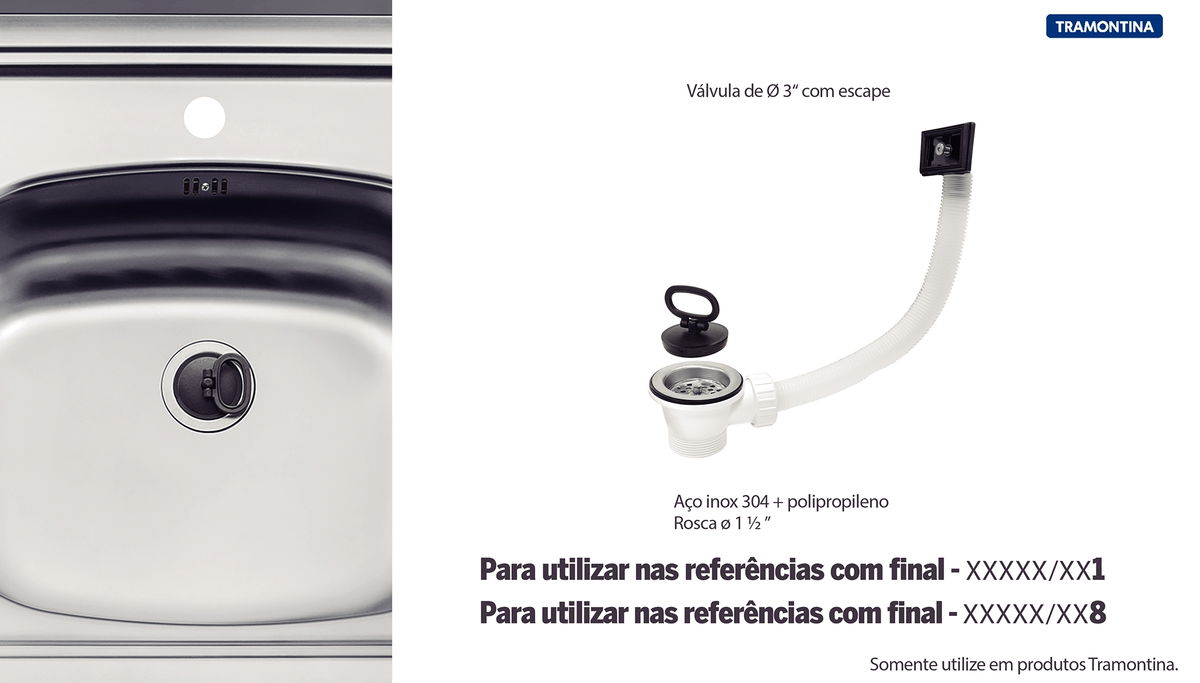 Válvula Tramontina Econômica com Escape 3" para Pia e Cuba Aço Inox Polido e Polipropileno